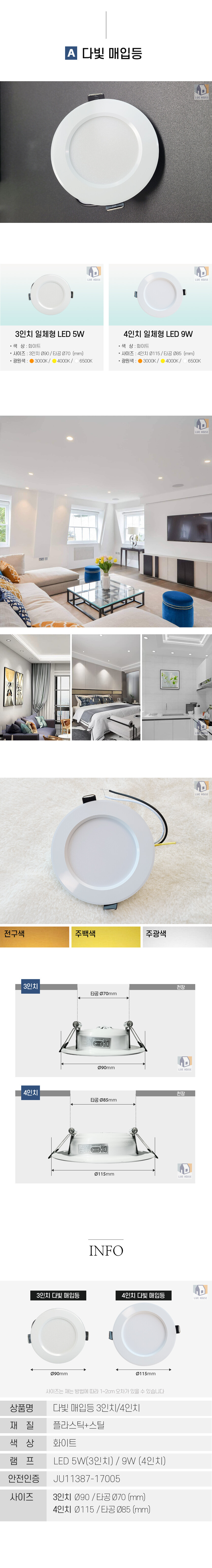 LED 3인치 4인치 5인치 6인치 매입등 COB 다운라이트 매립등 교체 설치