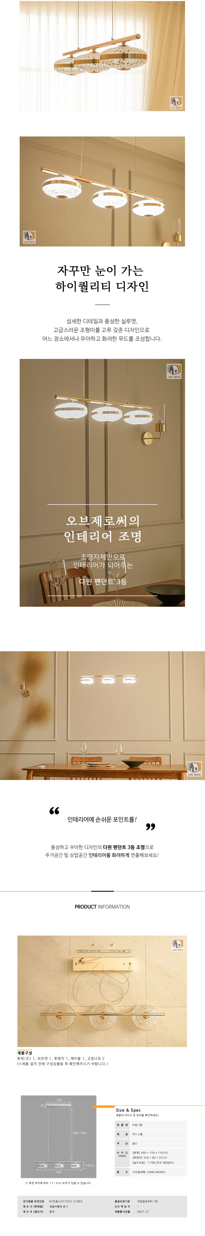 다윈 3등 LED 펜던트 조명 인테리어 포인트 식탁 주방 등기구