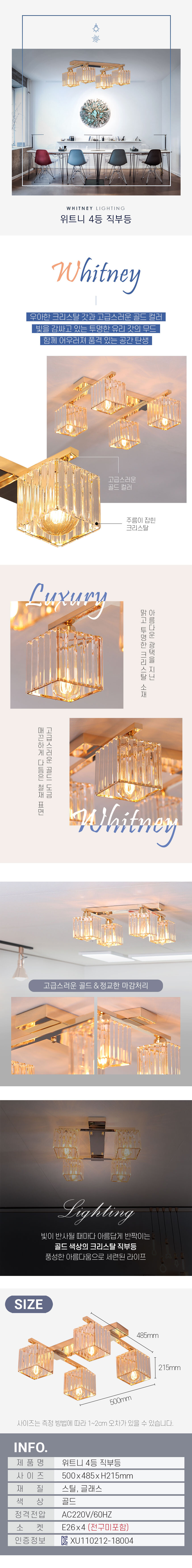위트니 인테리어 LED 크리스탈 카페 호텔 로비 골드 조명 4등 직부등