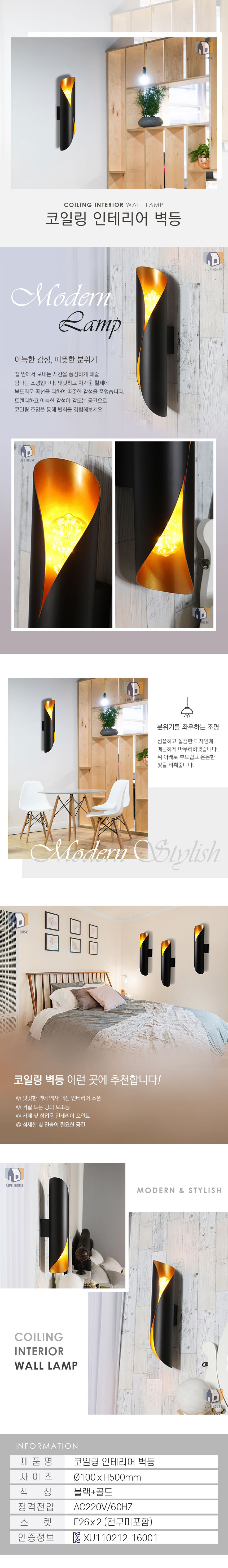 코일링 벽등 블랙 골드 호텔 로비 거실 침실 침대 장식