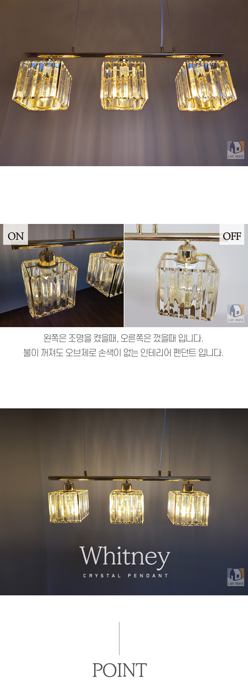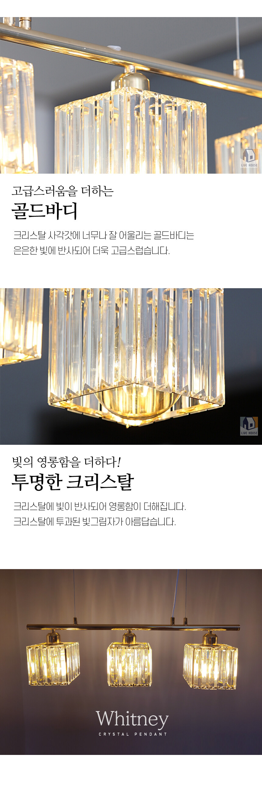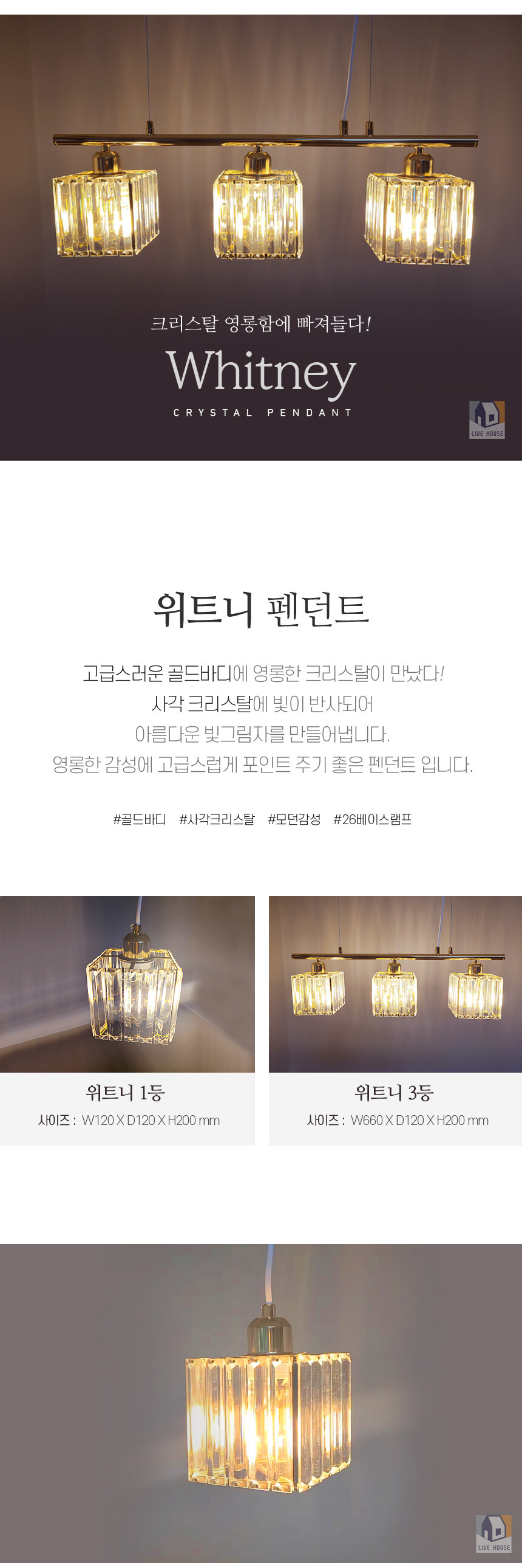 위트니 LED 주방 식탁 레일 팬던트 인테리어 카페 식탁등 크리스탈 조명 전등 1등 3등
