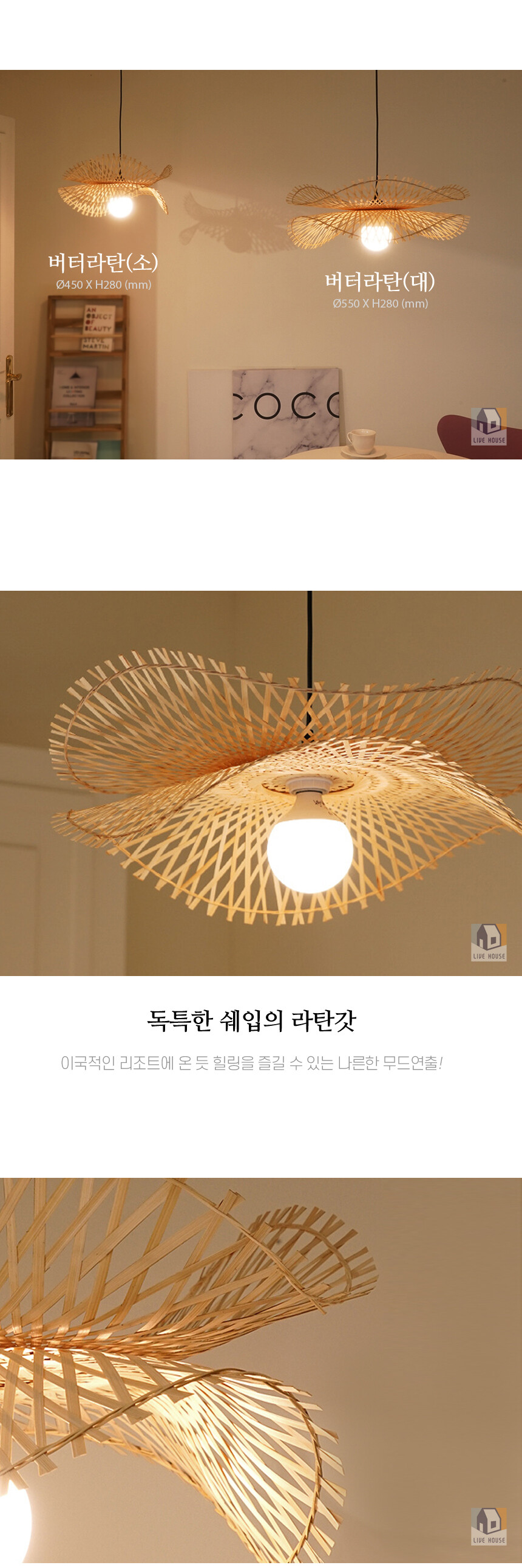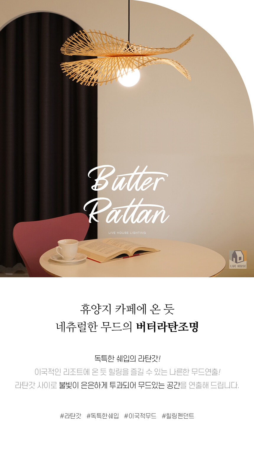 버터라탄 LED 레일 펜던트 인테리어 카페 식탁등 라탄갓 조명