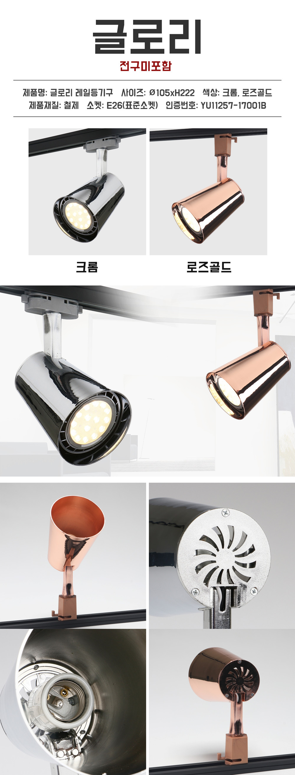 글로리 셀프 레일 조명 부속 식탁 일자 스팟 원통 소켓 라인 천장 카페