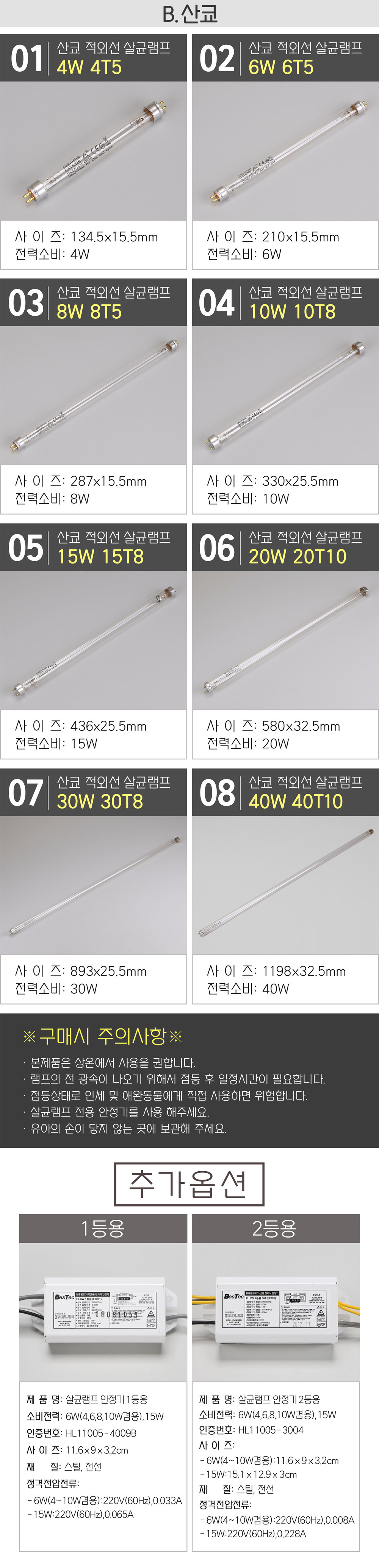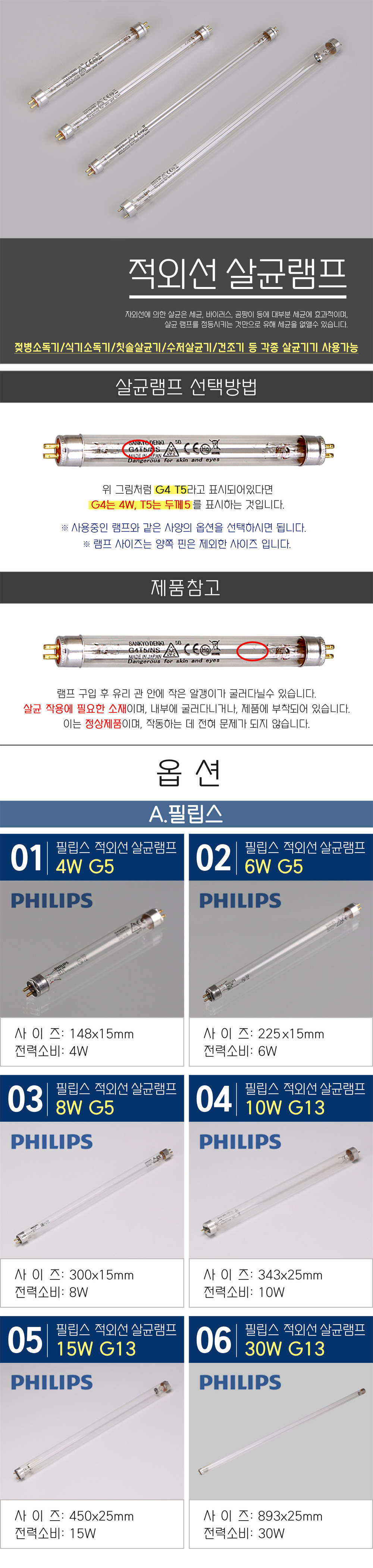 필립스 산쿄 UV 자외선 살균램프 칫솔 식기 건조 소독 4w 6w 8w 10w 15w