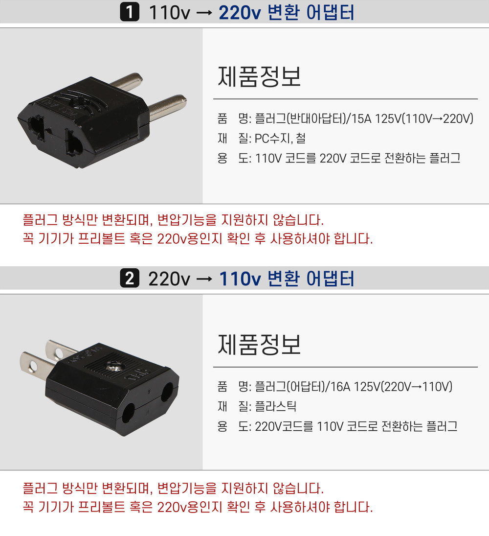 직구용 국내용 돼지코 110V 220V 변환 어댑터 플러그 코드 아답터 멀티 여행필수품