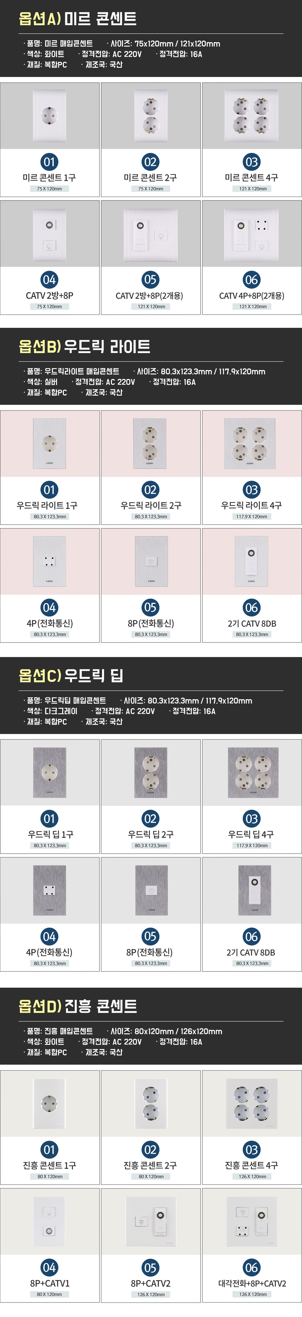 스위치 콘센트 커버 교체 방우형 전기 설치 통신 CATV 4P 8P 전화 랜선 모음전
