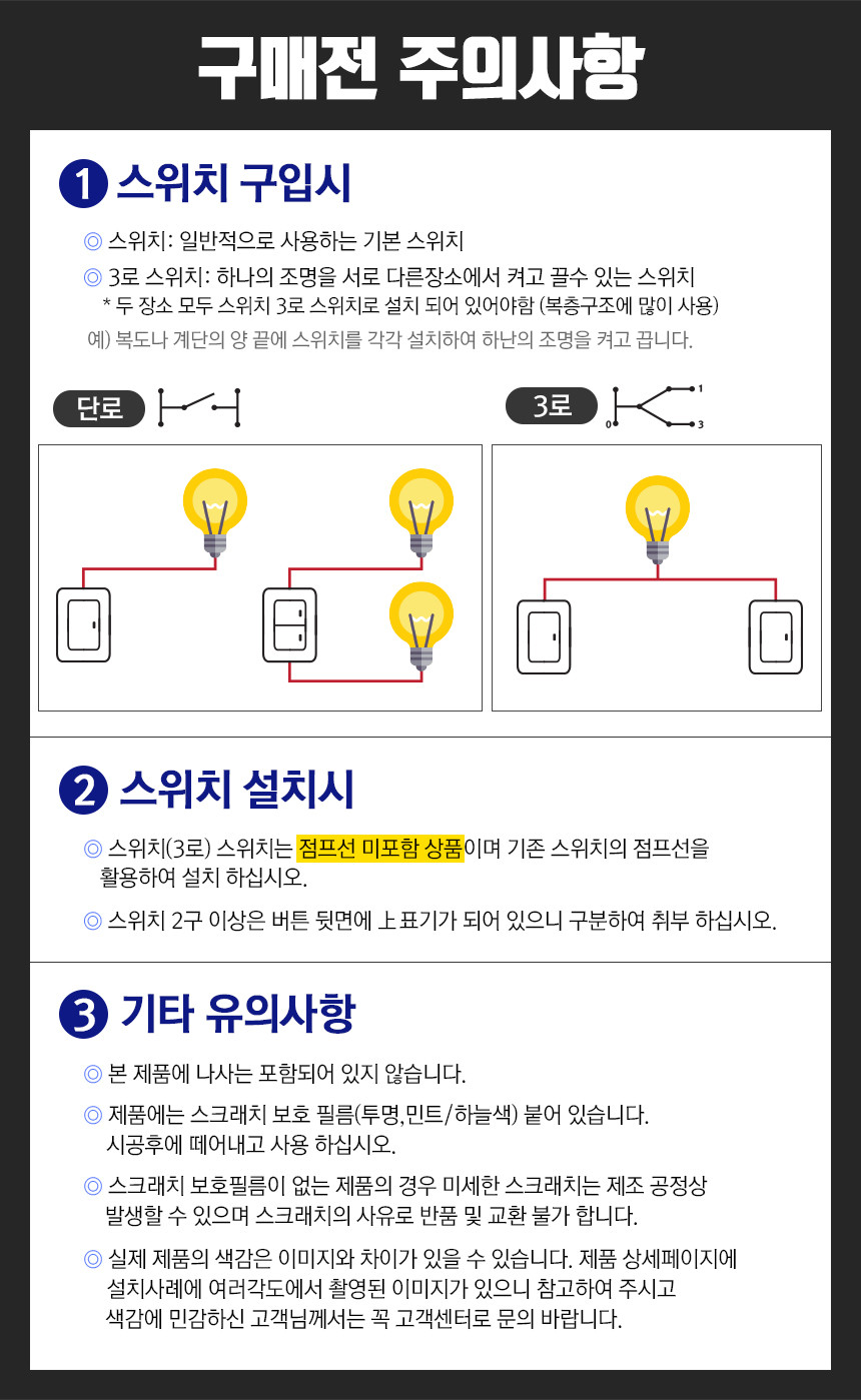 전기 전원 스위치 전등 커버 교체 단로 3로 1구 2구 3구