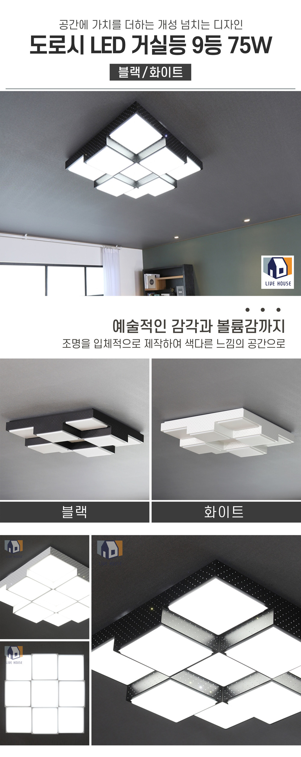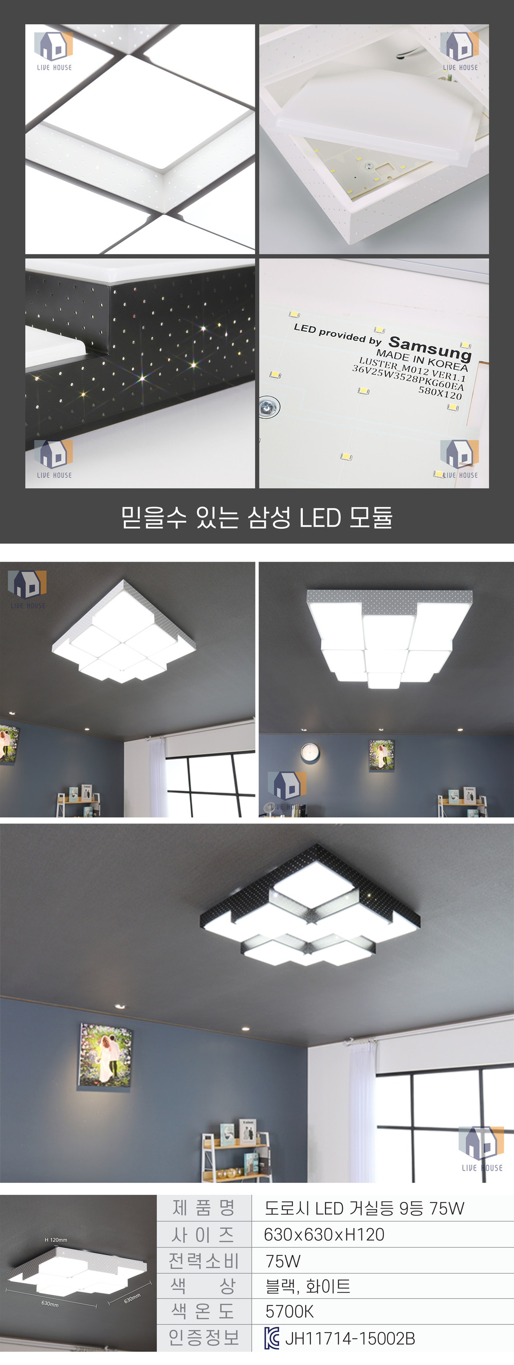 도로시 삼성칩 LED 타공 시스템 천장 거실등 방등 교체 75w 9등