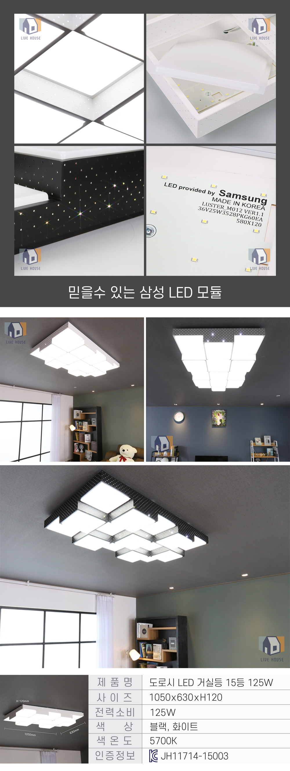 도로시 삼성칩 LED 타공 시스템 천장 거실등 방등 교체 125w 15등