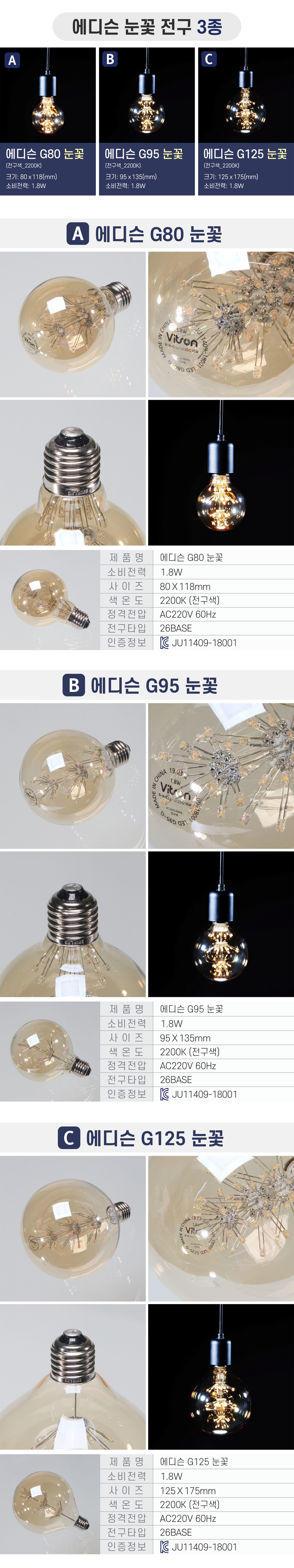 에디슨 볼구 G80 G95 G125 눈꽃 전구