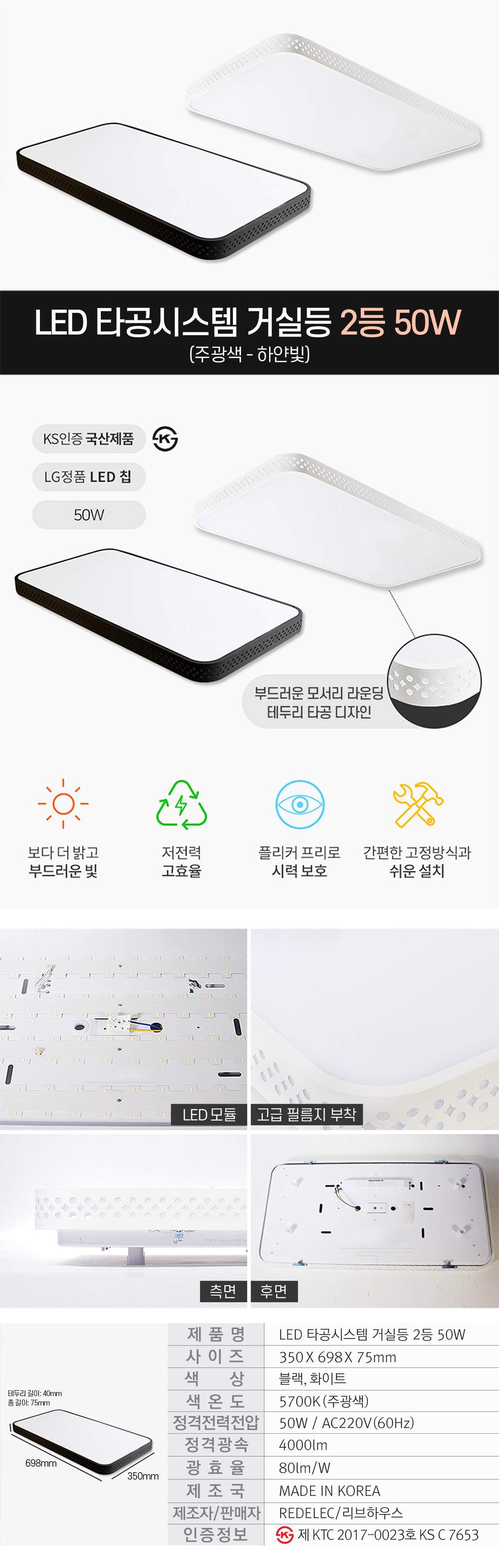 국산 LG칩 LED 타공 시스템 거실등 방등 2등 50w 조명 설치 교체