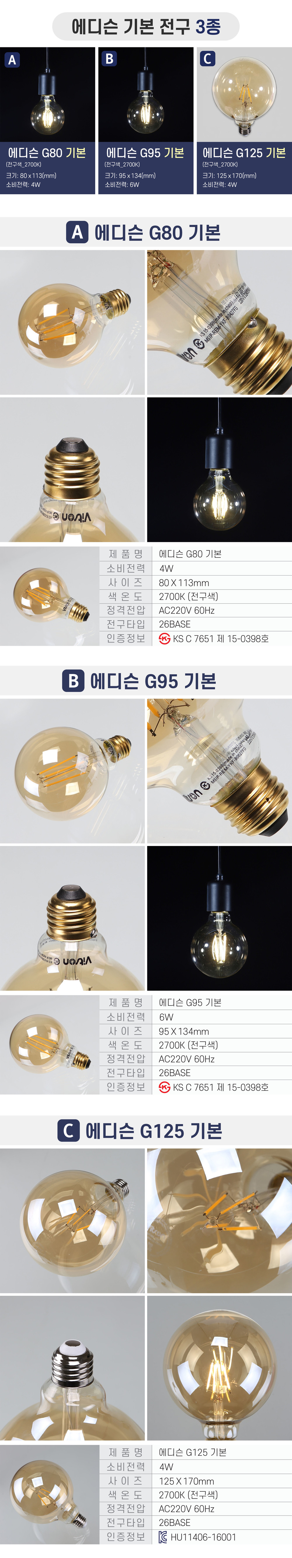 에디슨 볼구 G80 G95 G125 에디슨 전구