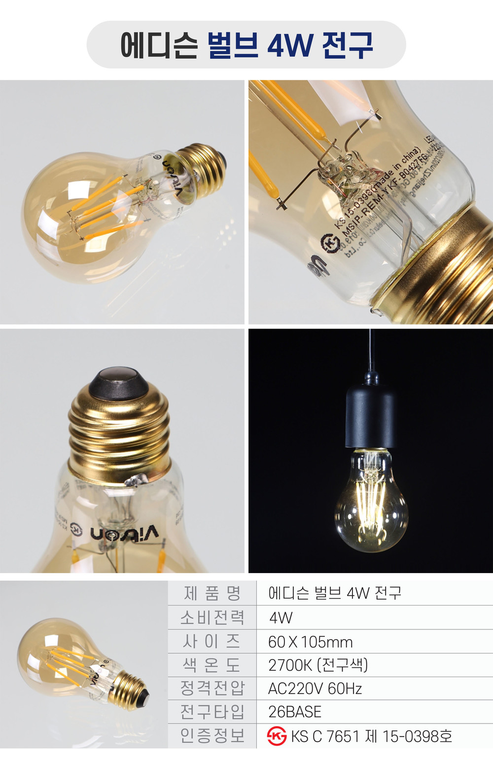 에디슨 벌브 4W 파티 루프탑 인테리어 전구
