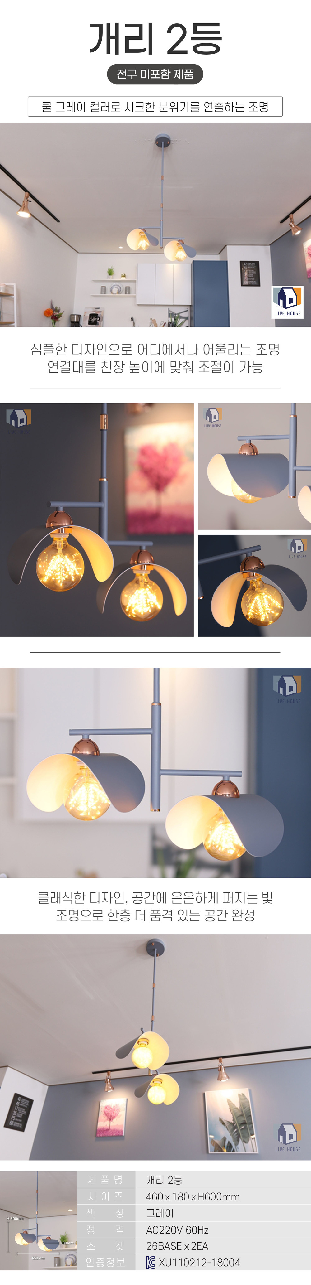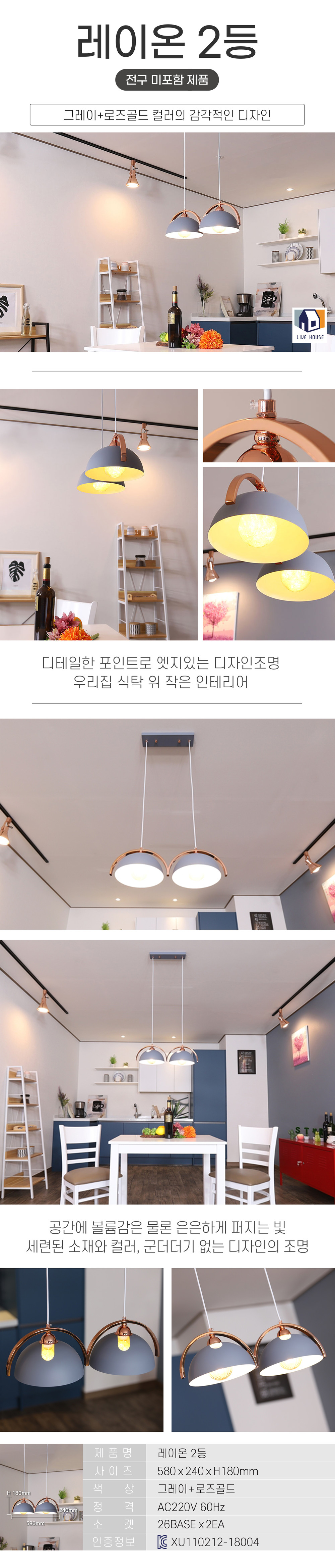 그레이 LED 펜던트 인테리어 거실 주방 식탁 조명 전등 2등
