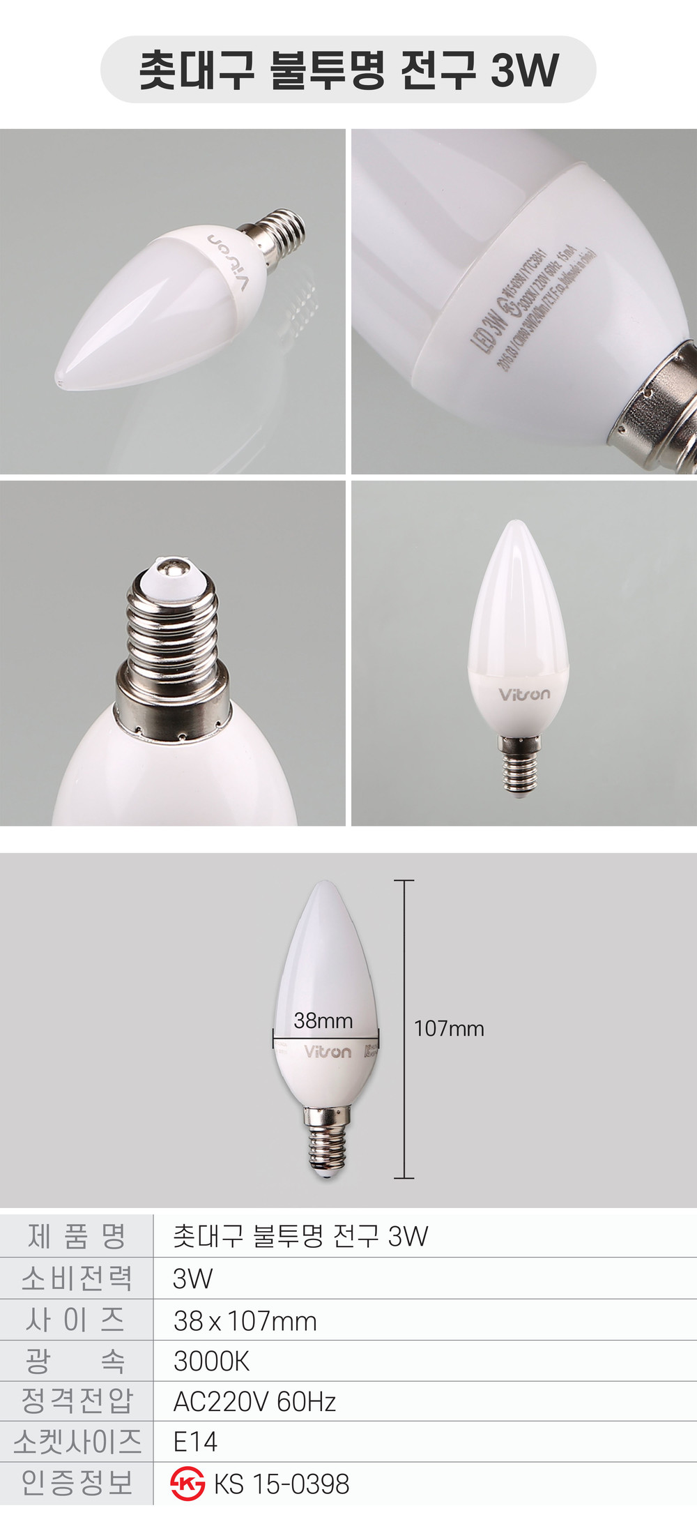 LED 꼬마 전구 미니 크립톤 촛대 램프 촛대구 E14 타입 전용