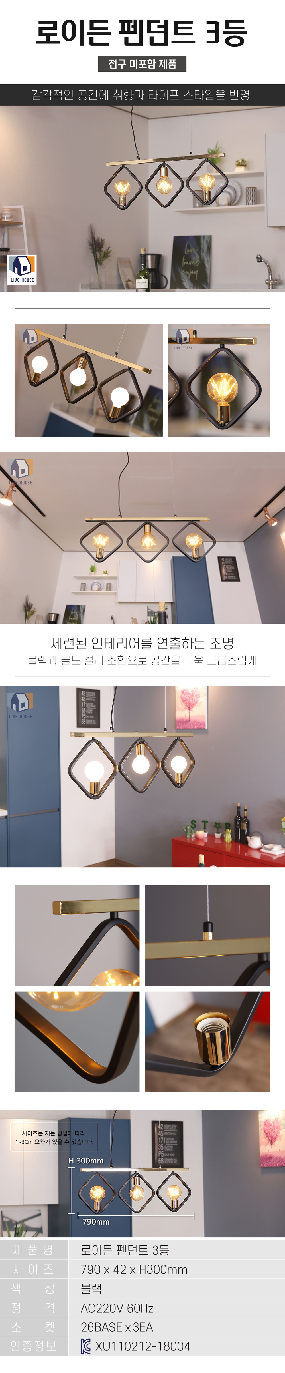로이든 3등 LED 펜던트 인테리어 카페 거실 주방 식탁 조명 포인트 전등