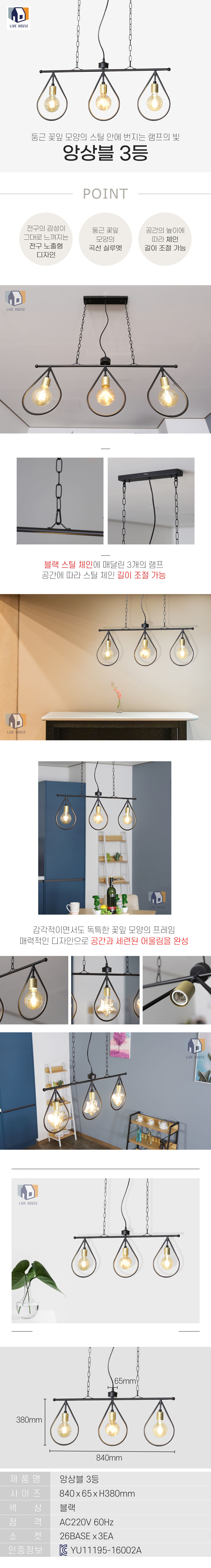 앙상블 3등 조명 모음 LED 북유럽 식탁등 펜던트 카페 전등