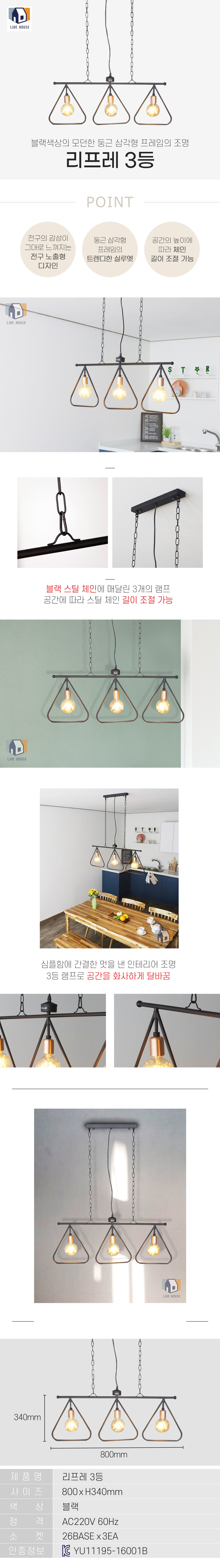 리프레 3등 조명 모음 LED 북유럽 식탁등 펜던트 카페 전등