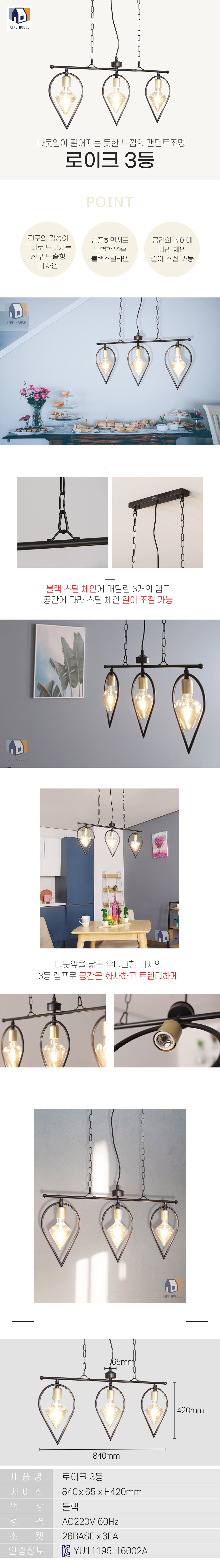 로이크 3등 조명 모음 LED 북유럽 식탁등 펜던트 카페 전등