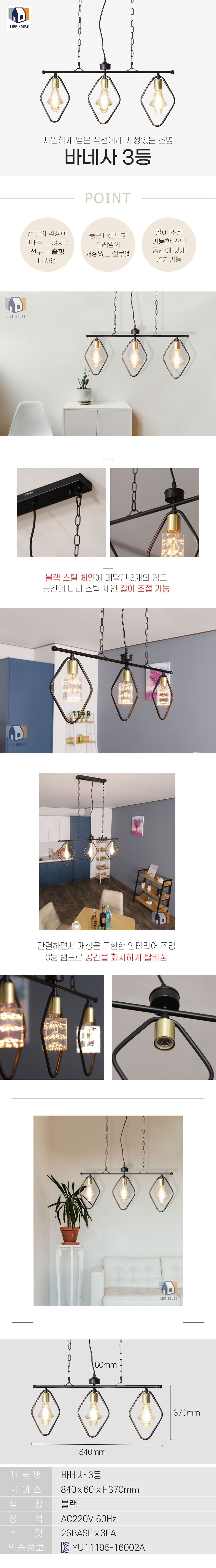 바네사 3등 조명 모음 LED 북유럽 식탁등 펜던트 카페 전등