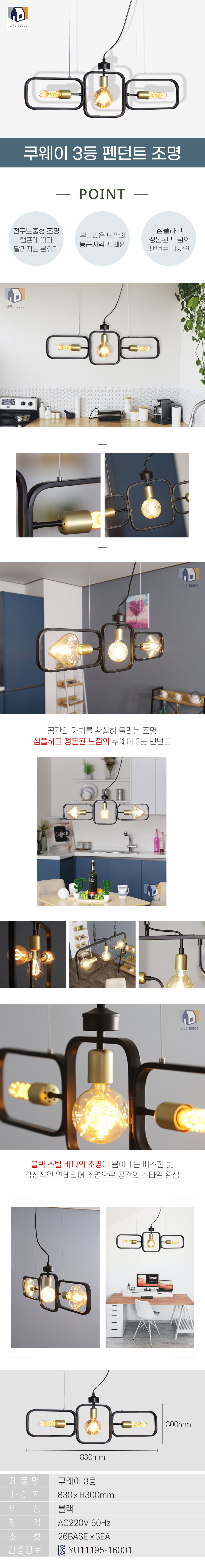 쿠웨이 3등 조명 모음 LED 북유럽 식탁등 펜던트 카페 전등