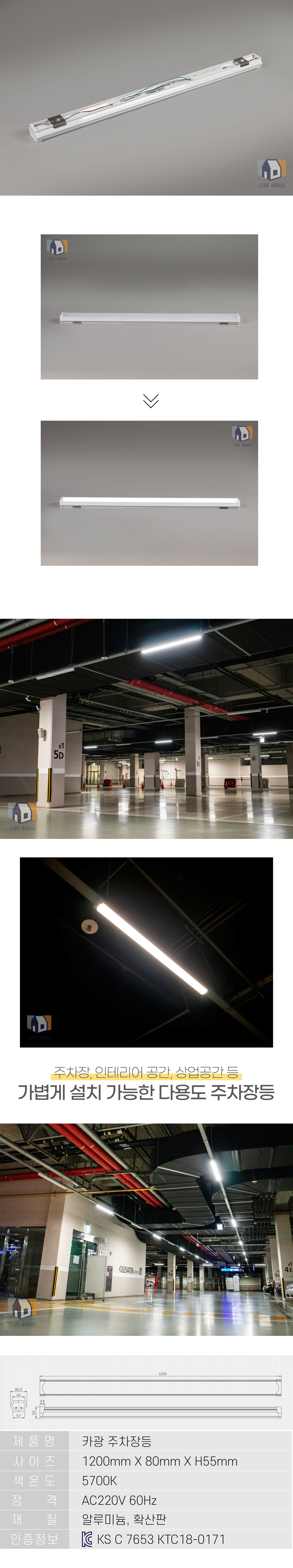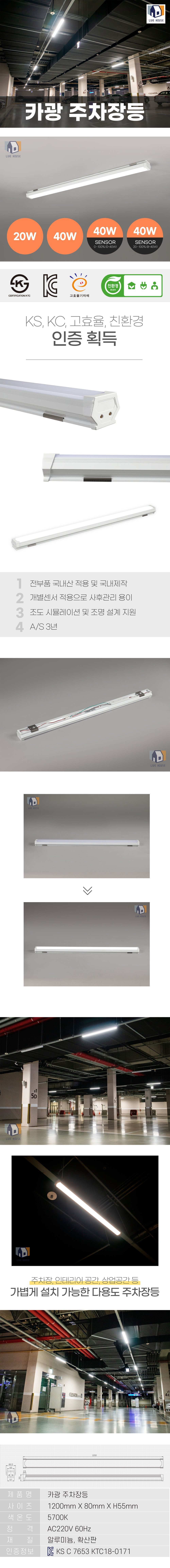 카광 인테리어 국산 LED 주차장등 산업조명 20w 40w
