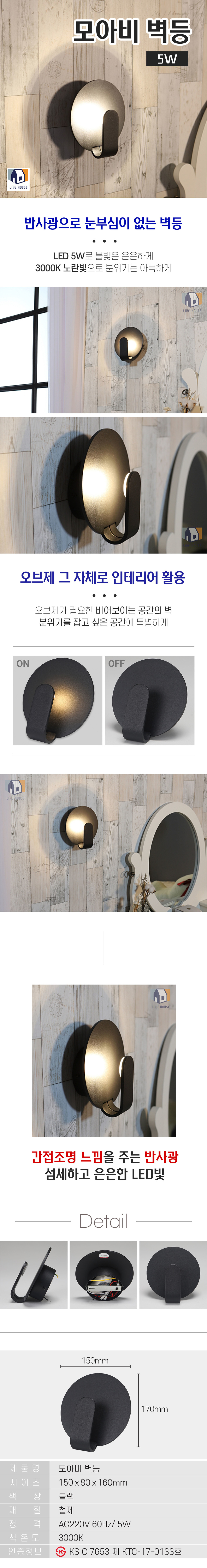모아비 5W 외부 실내 카페 식당 인테리어 벽걸이 방수 벽등