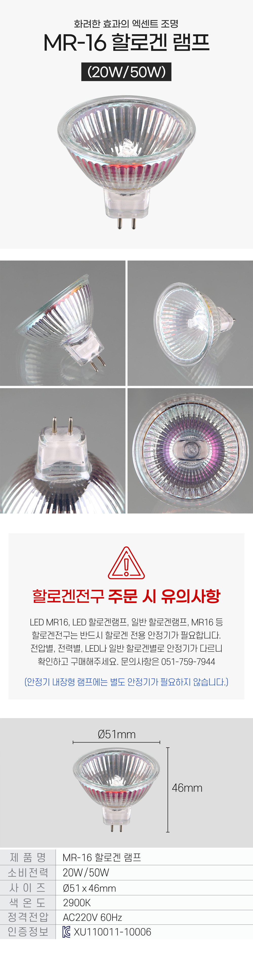 오스람 할로겐 램프 12V 20W 50W MR16 캔들 전구