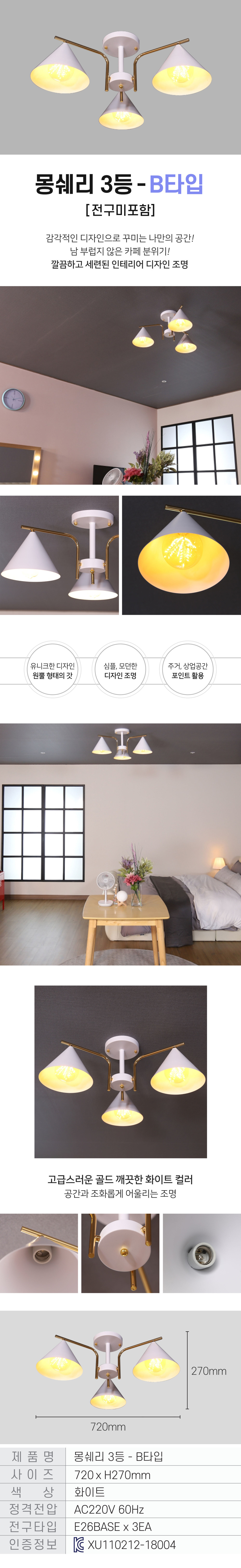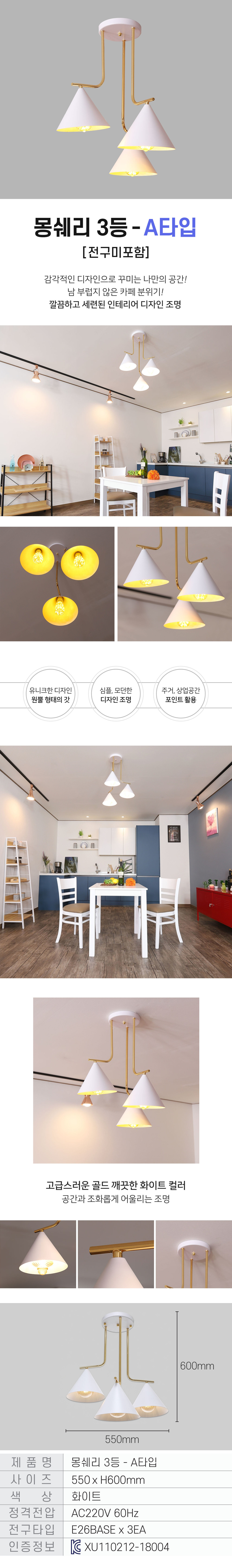 몽쉐리 인테리어 카페 로비 호텔 거실 조명 전등 실내 3등
