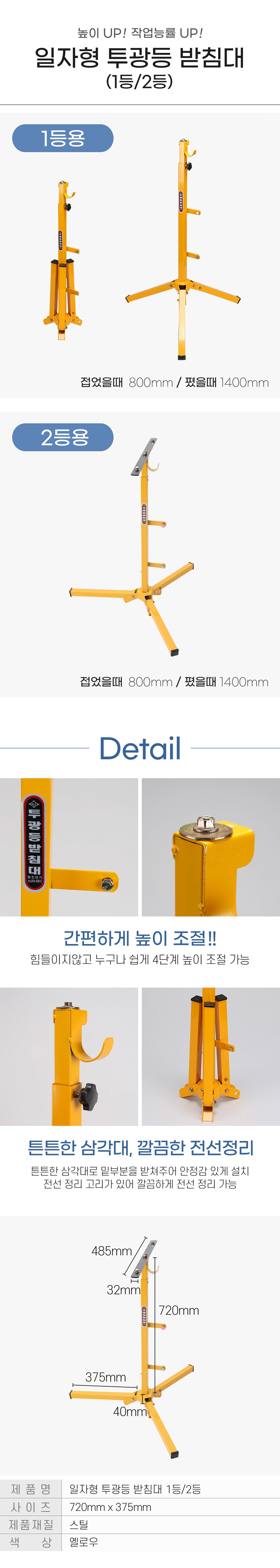 일자형 투광기 스탠드 투광등 작업등 거치대 고정 삼각대 받침대 삼발이 지지대 다리