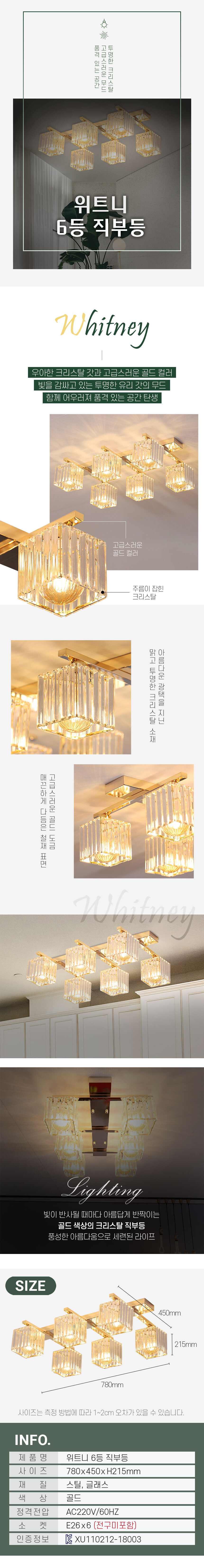 위트니 인테리어 LED 크리스탈 카페 레스토랑 사무실 네일샵 골드 조명 6등 직부등