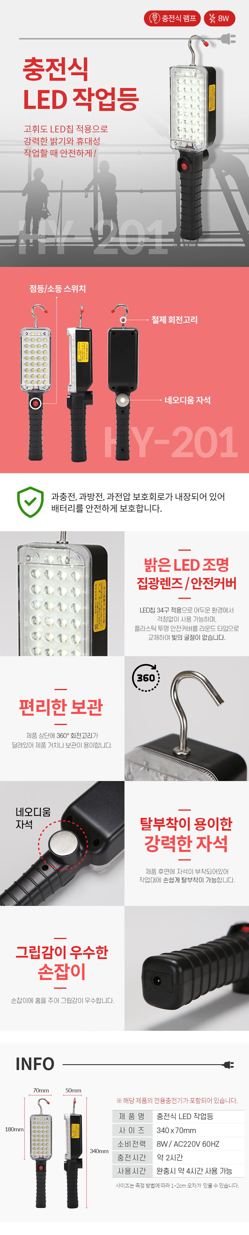 충전식 LED 작업등 캠핑 랜턴 낚시 후레쉬 야외 자석 걸이 조명