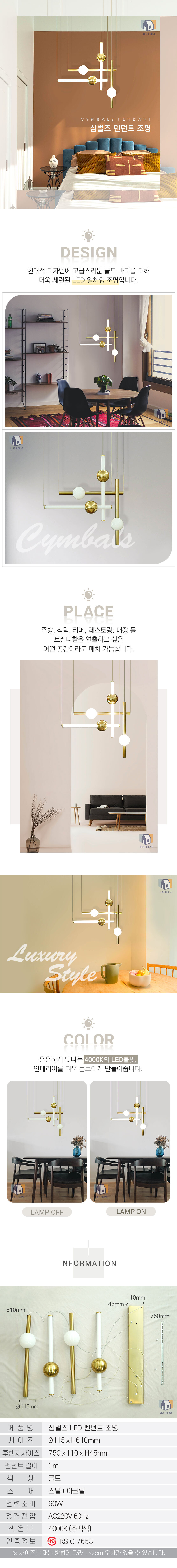 심벌즈 LED 골드 펜던트