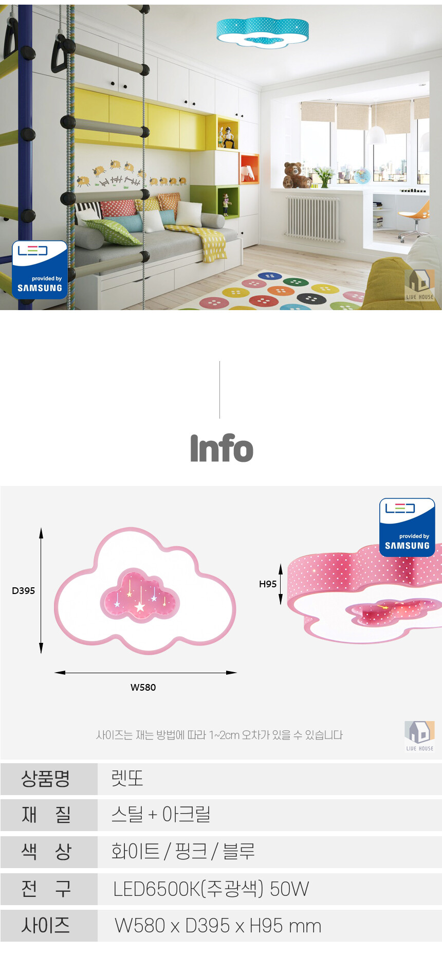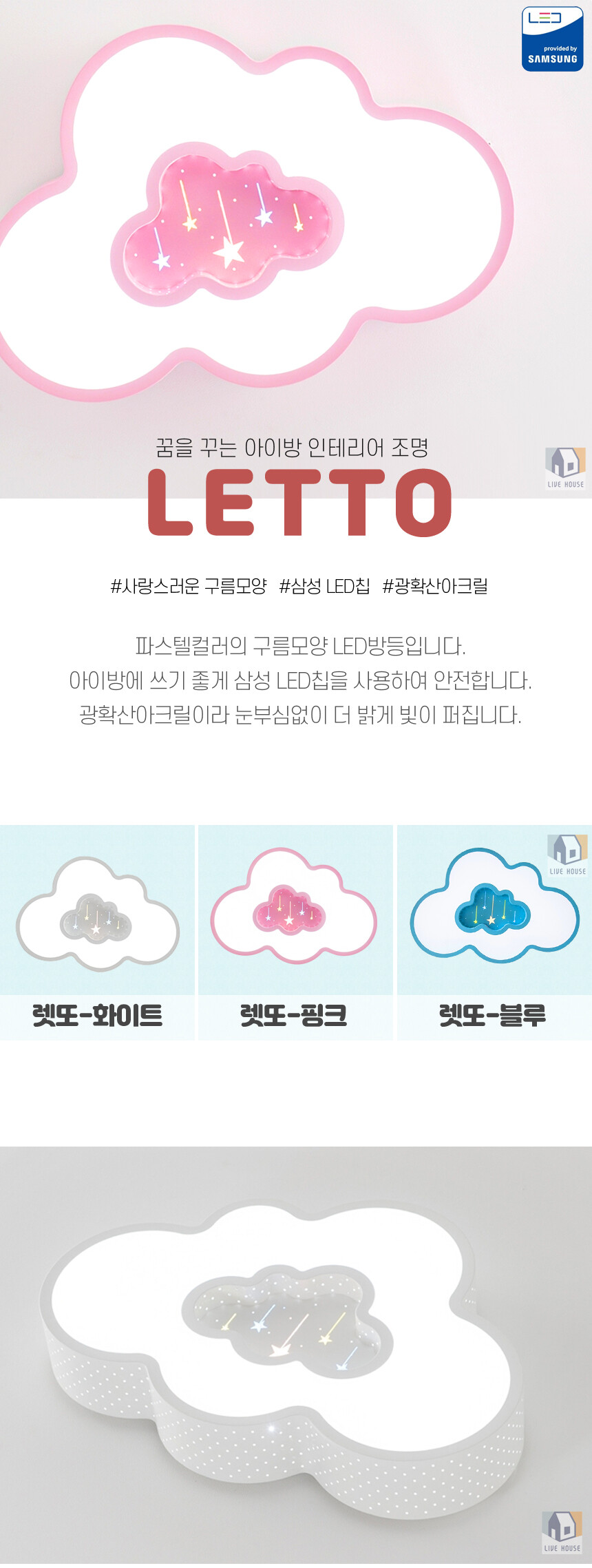렛또 국산 삼성칩 LED 어린이 유아 아이방 키즈 자녀 구름 방등 전등 조명 50W