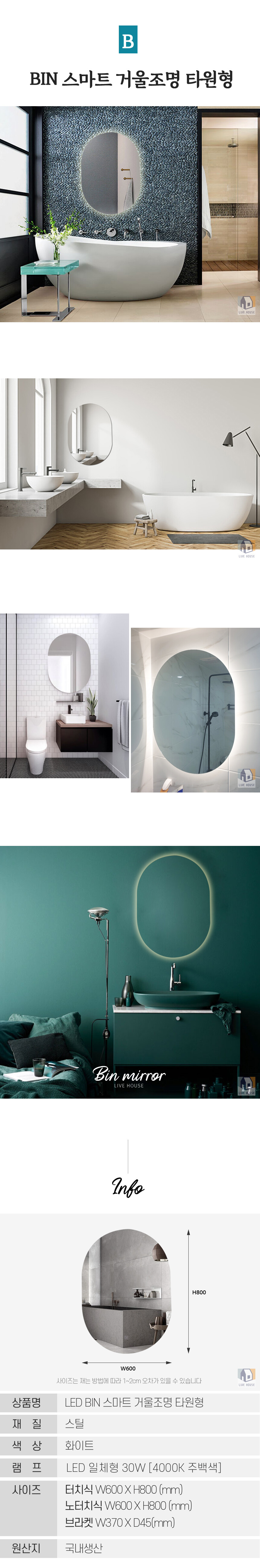 Bin LED 간접 화장대 아파트현관 미용실 욕실 원형 사각 메이크업 인테리어 벽거울조명