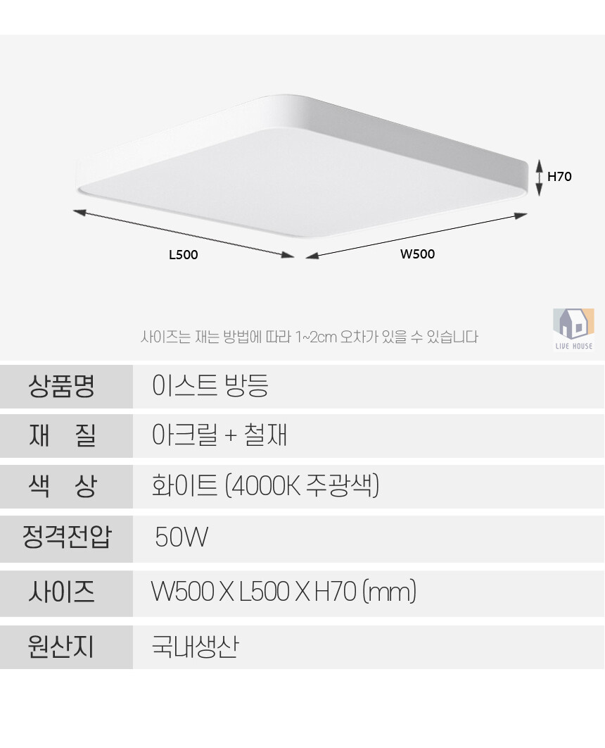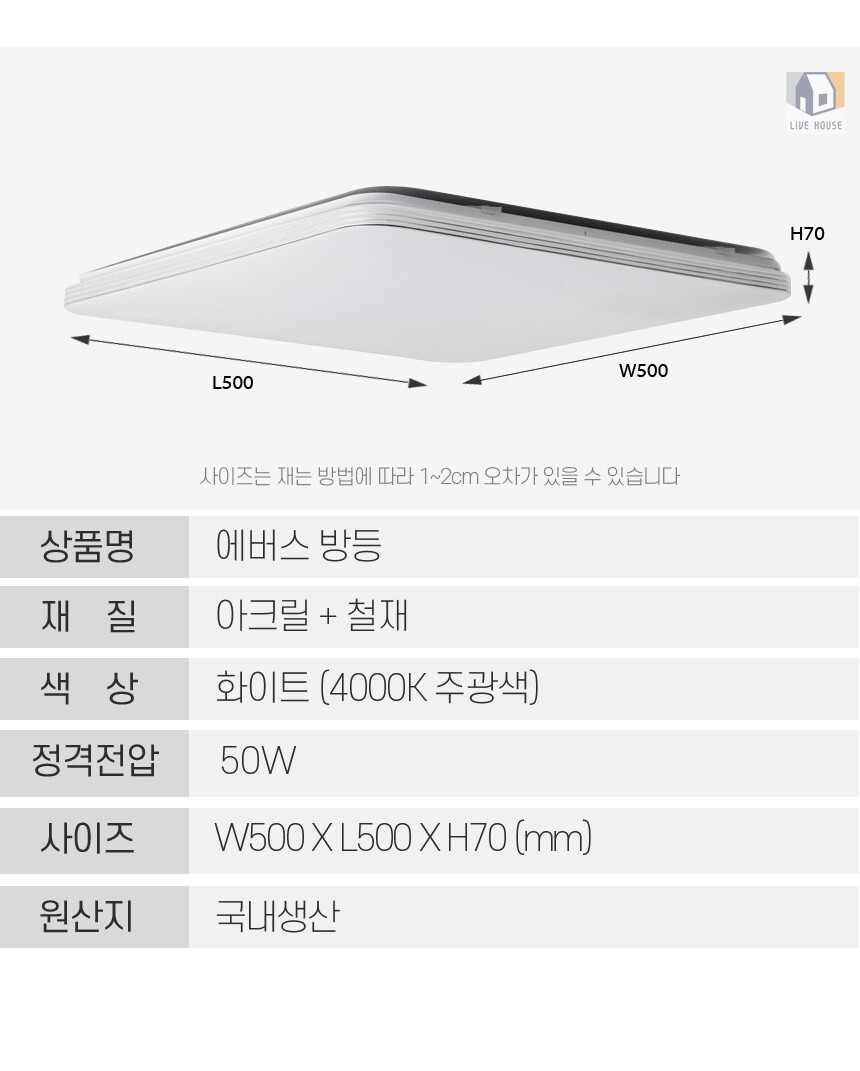 LED 리모컨 방등 거실등 국산 천장 주방 조명 삼성칩 50W 등기구 교체 설치