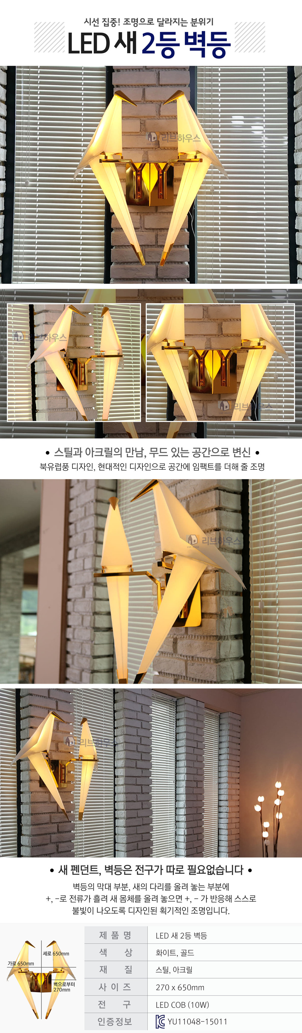 새 모양 벽등 골드 거실 장식 포인트 호텔 조명 2등